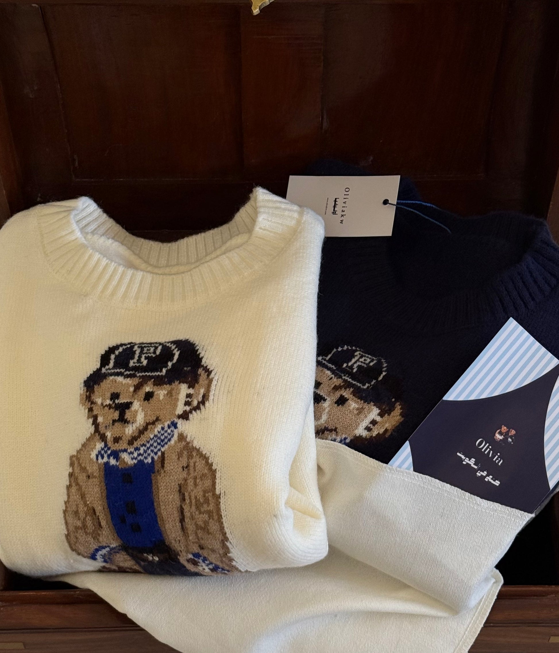 With every sweater you will get a teddy bear medal box, a coffee cup, and a winter medal